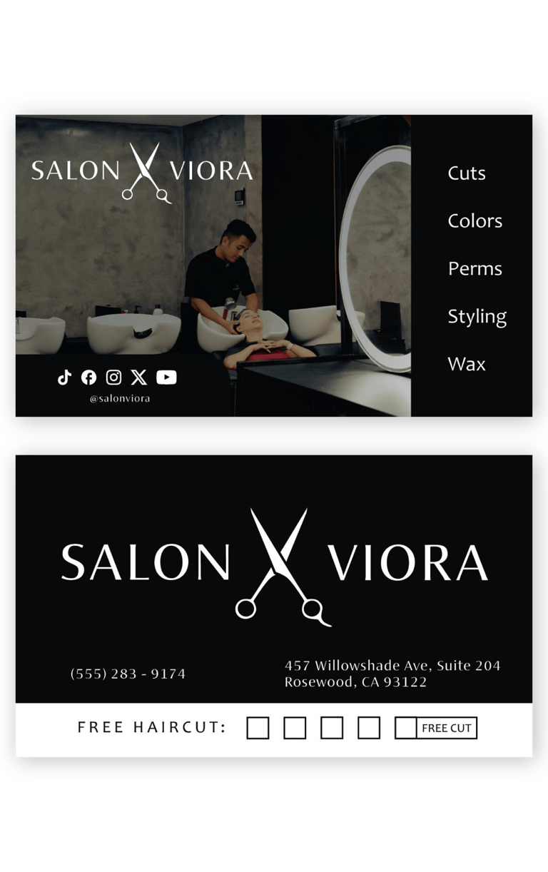 Treating this as a realistic brief, I requested opinions from peers and adjusted accordingly. I adhered strictly to the minimal, high-end aesthetic, only deviating to adjust spacing and layout. Final assets include vector logo files and a print-ready PDF of the business card with meticulous kerning, grid-based alignment, and high-resolution imagery. Every detail, from the crisp scissors outline to the polished typography, reflects thoughtful development for professional identity fit for a sleek salon concept.